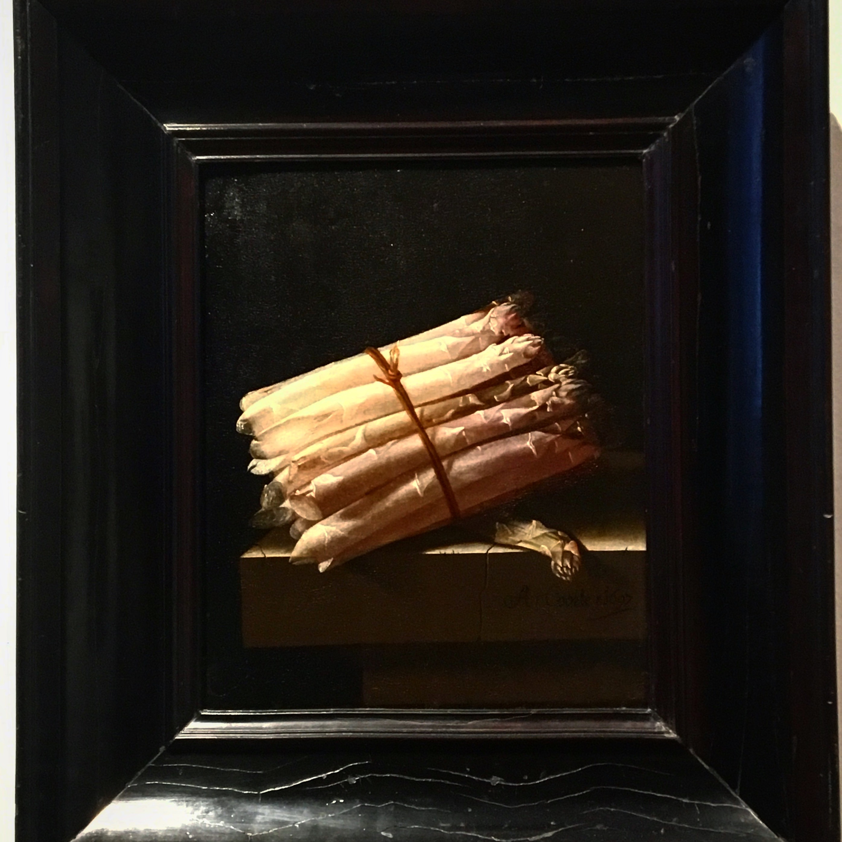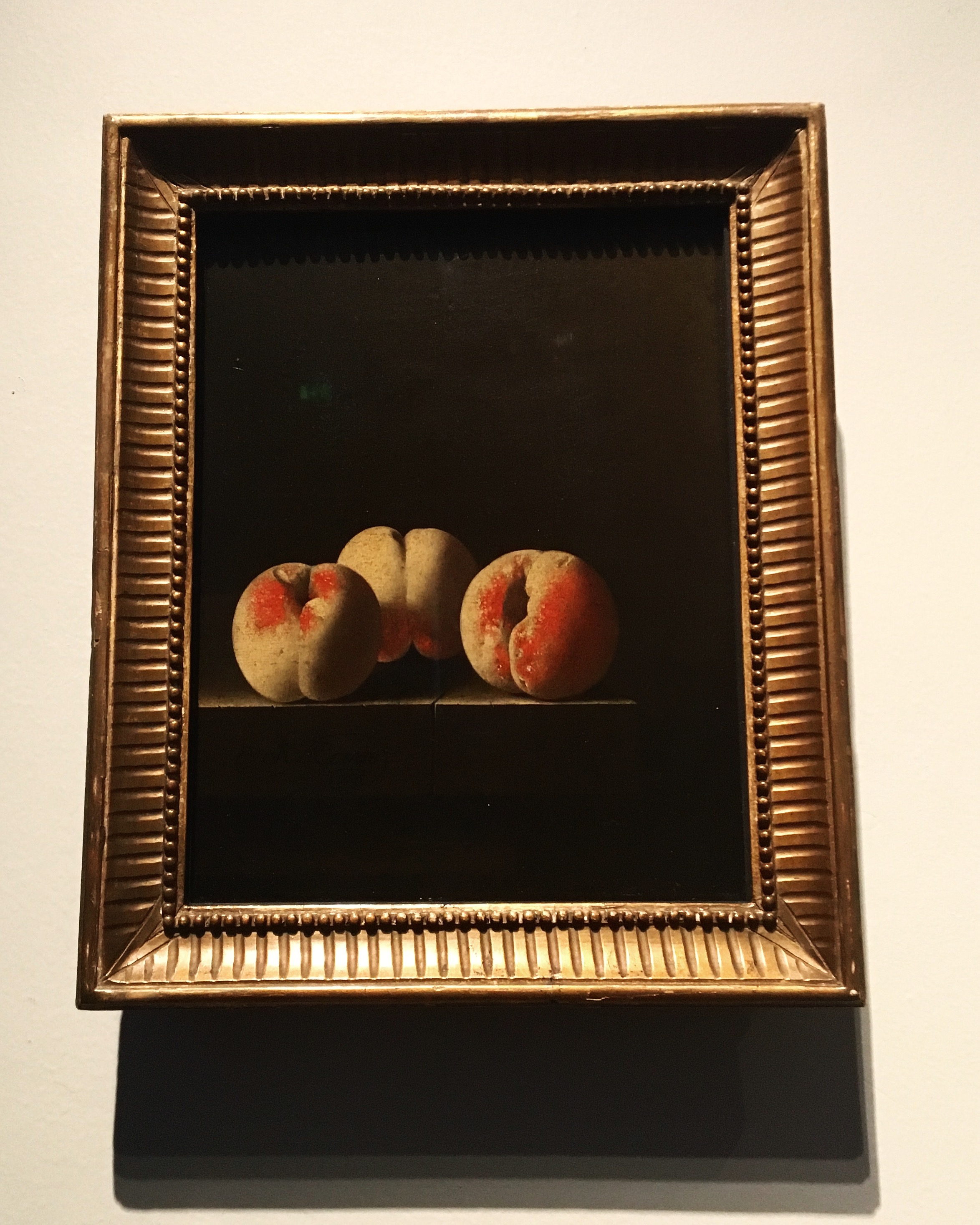Rounding out the second floor dedicated mostly to works from the 17th century is a corridor of small rooms that contain (surprise, surprise) small paintings, seemingly arranged by theme. One such room showcases a series of still-life paintings by the Dutch painter Adriaen Coorte (1659/1664-1707). They are simple in their subject matter: a handful of sea shells (a hot commodity of this time), three peaches; another depicts a tied bunch of asparagus, the one next to it, a bowl of berries. Yet the technique and detail are nothing short of exquisite and elegant. They are patient and meticulous studies, uniform in their light and dark contrast. Each contains a mostly pitch-black background, as well as a hidden source of light that perfectly illuminates the subject. The definition and intricacies of the objects simply pop – you can’t help but to lean in closer and closer, and the more you look, the more outstanding they become.
