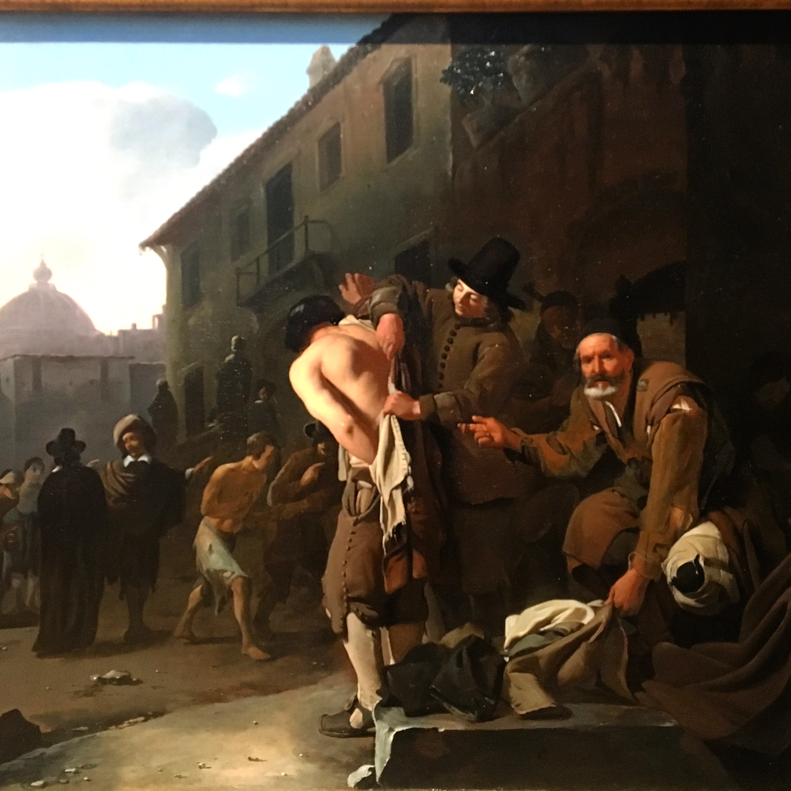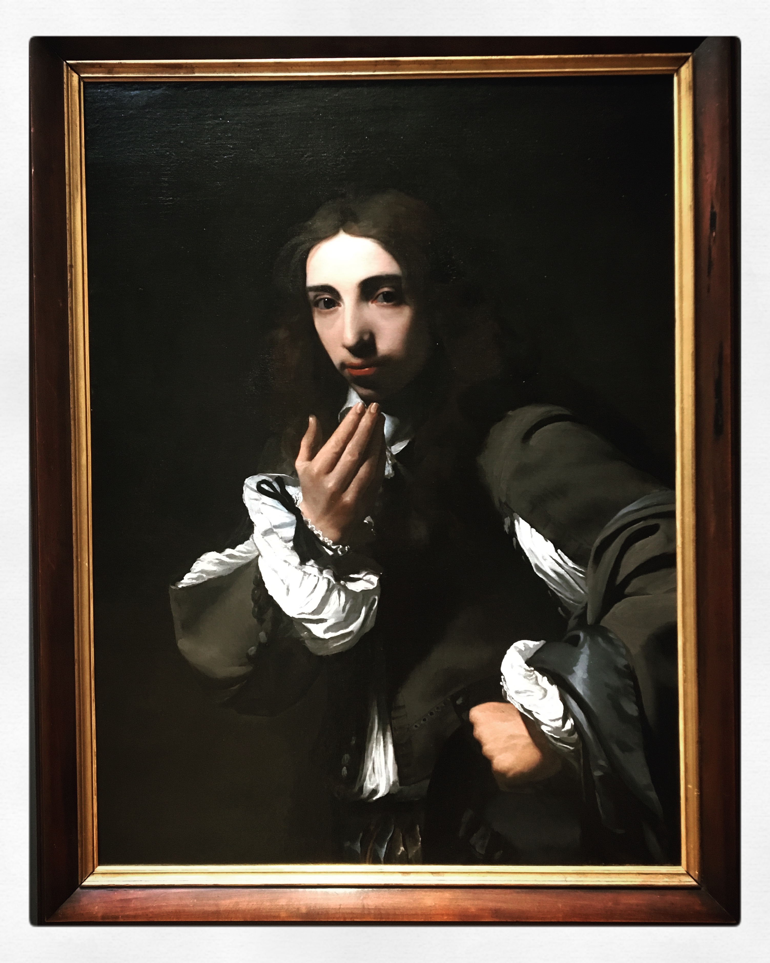 A portion of the paintings in this room are by Flemish painter Michiel Sweerts (1618-1664), who spent a significant amount of time in Rome and was well-received by his fellow expatriate artists (particularly in the Bamboccianti circle) as well as by the then reigning papal family – even receiving a knighthood of sorts. What’s strikingly familiar in his paintings is the influence of (again) Caravaggio. The first painting of his that demanded my attention was his Portrait of Joseph Deutz (c. 1648-1649), who was a member of one of the most prominent trading families in Holland. This portrait – the only one in the room – is remarkable for some obvious reasons, most notably the dramatic use of tenebrism that lights up his face and hands (not to mention those fabulous sleeves). The dramatic play between light and dark pulls your attention to the expression on his face and the beckoning of his hands – it’s as if he is inviting you to follow him along on a journey of discovery as he explores the history and secrets of Rome, the Eternal City. This impression makes sense when you consider that at the time of the portrait’s commission and creation, Sweerts and Deutz were both in Rome, the latter presumably undertaking his grand tour, like many of his peers. A grand tour, in this context, was a kind of rite of passage that young aristocratic men (and chaperoned-women) in the 17th and 18th centuries often embarked on, their destination set on the sites and wonders of classical antiquity and the Renaissance. The focus here was to admire, study, and wax poetic over specific masterpieces of art and architecture. For those who could afford it, this trip often began in England, crossed over the Channel to Paris, went through Switzerland and the Alps, and finally covered the most significant Italian cities (Venice, Florence, & Rome), often concluding in the idyllic warmth of southern cities like Naples and the ruins of Pompeii.